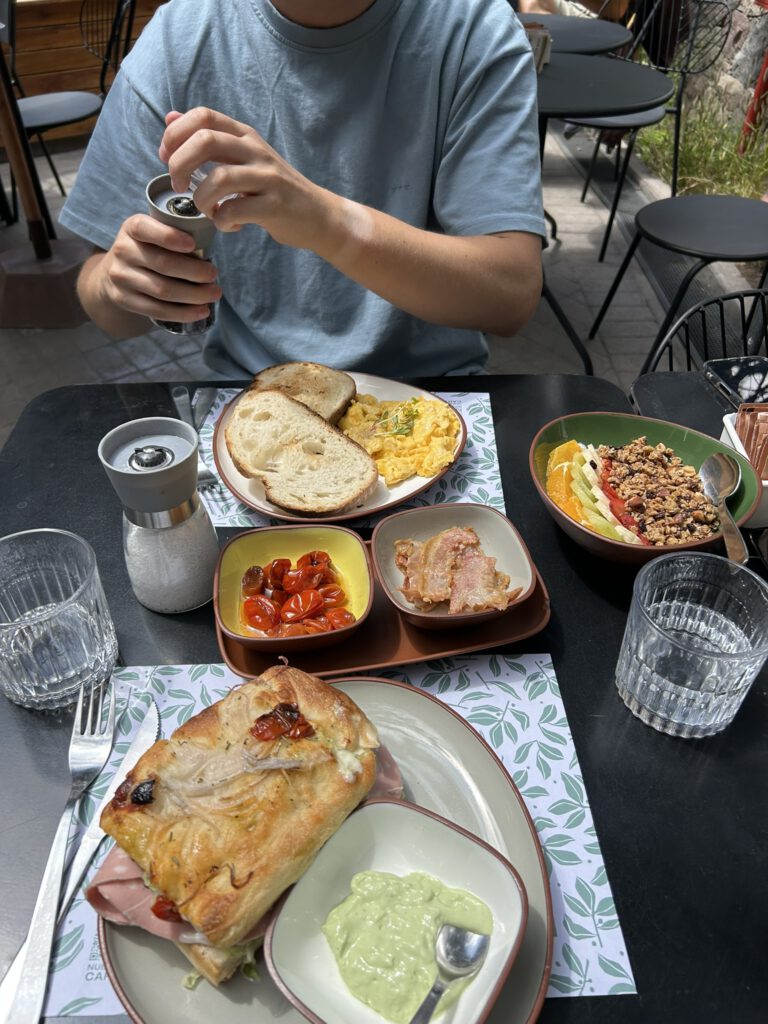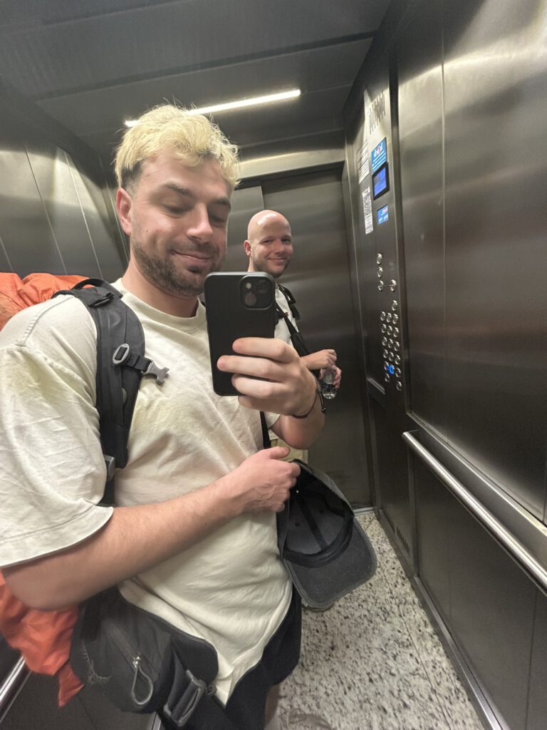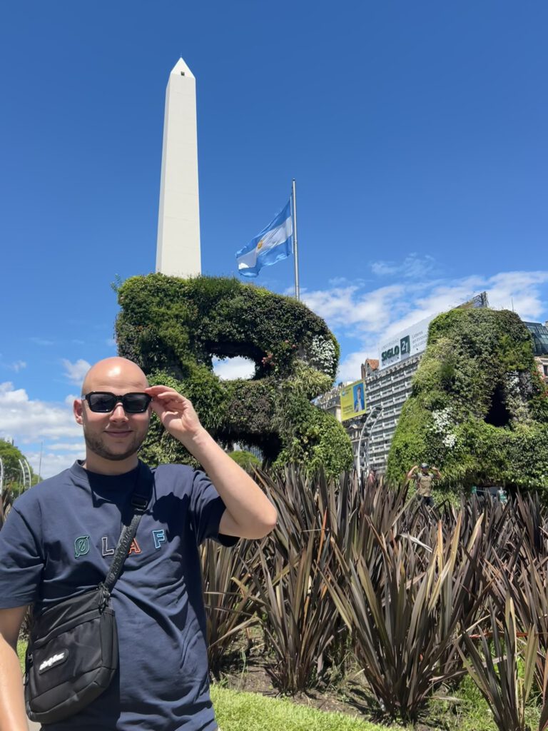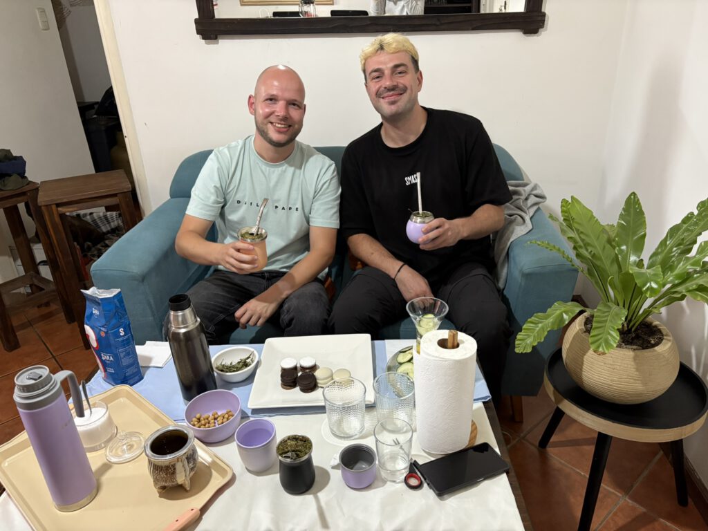 Zoals gezegd, Buenos Aires was het beginstation van deze 2 weken. Daar stond ik dan in de toch vroege morgen op het vliegveld, te wachten tot Max door de deuren zou lopen. Het was een directe vlucht vanuit Amsterdam en ik had in tijden niet meer zoveel Nederlanders gezien. Uiteindelijk kwam m’n grote vriend dan ook. En wat viel me op? Hij was afgevallen én gegroeid. Dat afvallen was wel logisch: Max was de afgelopen flink aan het trainen gegaan met z’n nieuwe hobby hyrox. Maar dat groeien, kan dat nog op je 29e? (ik mats je ff een jaartje hoor chef 😉 ). Enfin, misschien moest ik de ochtend nog uit m’n ogen wrijven. Ik kreeg hierbij hulp van de pepernoten die Max mee had genomen, toch lekker om weer iets uit je eigen land te proeven.