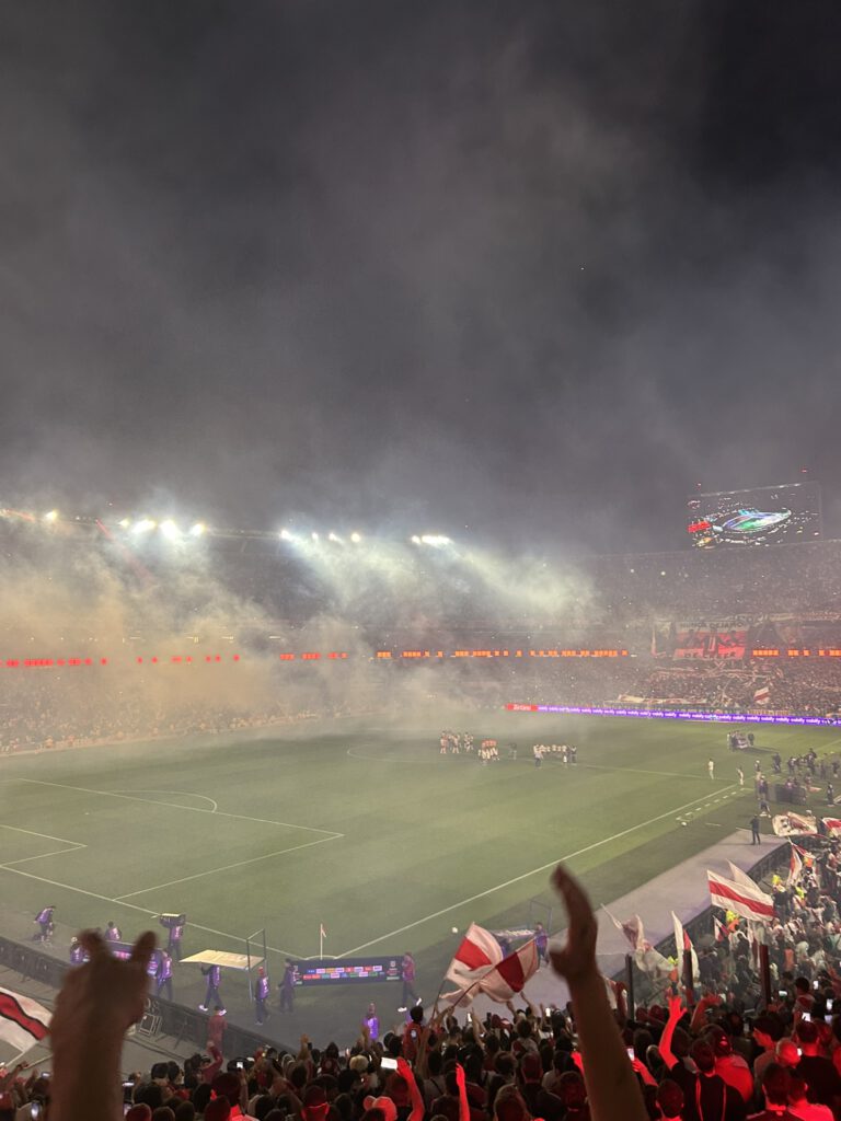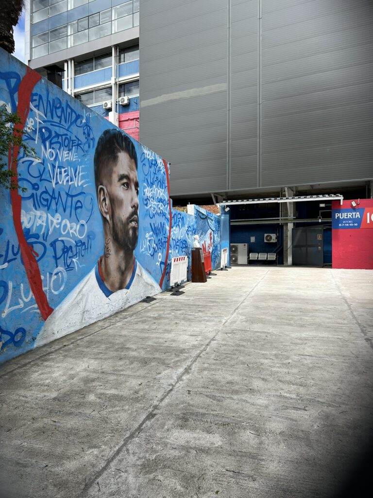 De tweede wedstrijd was van River Plate, één van de grootste clubs van het continent toch wel. Met een stadion waar 85.000 mensen in kunnen ook het grootste stadion van Latijns Amerika! Ik ben ook in het 2e en 3e grootste stadion geweest deze reis, iemand een gok doen welke dat zijn? Winnaar krijgt een sticker! Een avondwedstrijd en we konden er lopend heen, helemaal top. Het was het einde van het weekend en we hadden veel gedaan, dus hadden allebei niet meer de meeste energie. Gelukkig konden we zitten. De spelersopkomst zorgde er ook voor dat we wakker waren, want wat een geluid was dat met al het vuurwerk. De wedstrijd zelf ging minder voor River Plate: 0-1 achter & het bekende “jugadores ,la concha de su madre” werd ingezet richting de eigen spelers (je mag zelf googlen wat het betekent). Met name spits Miguel Borja kreeg het te verduren, bij elk balcontact volgde gefluit vanuit het stadion (en met name van een 10 jarig jochie achter ons). Maar dan… 90+5 en een penalty voor River! Wie staat achter de bal? Miquel Borja! Tijd om de monden te snoeren. Aanloop en… de keeper pakt ‘m! Scheids fluit af, 0-1 verloren. En Miguel Borja? Die betaalt voortaan dubbel voor z’n biertjes in het café 😉